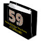 Este sencillo y divertido diseño de bolsos de regalo de cumpleaños con temática de Navidades y cumpleaños, cuenta con un gran número "59", con un patrón de rayas rojas, blancas y verdes. También incluye el mensaje "Feliz cumpleaños número 59 y Feliz Navidad", y un nombre personalizado. El fondo es negro de color. Una bolsa de regalo como esta podría ser una manera divertida de envolver regalos que se están dando a alguien que nació el Día del Navidad (25 de diciembre) y que está celebrando su 59º cumpleaños. [~Z0000407]