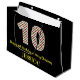 Este divertido y simple tema de Navidades y el tema de cumpleaños 25 de diciembre diseño de bolsos de regalo presenta un gran número "10" con un patrón de franjas verdes/blancas/rojas, junto con el mensaje "Feliz décimo cumpleaños y Feliz Navidad", y un nombre personalizado. El fondo es negro de color. Una bolsa de regalo como esta podría ser usada para envolver regalos que se le están dando a alguien cuyo décimo cumpleaños cae en el Día del Navidad (25 de diciembre). [~Z0000407]