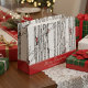 Esta moderna bolsa de regalo personalizada de invierno y temporada de fiestas "Feliz Navidad" incluye abedules dibujados a mano con pájaros cardenales rojos encaramados en ramas con tinta negra, en un elegante fondo blanco. Todo el texto es editable. Personaliza tu saludo de Navidad favorito y tu apellido.