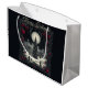 Bolsa de regalo grande Feliz Gothmas Navidad. © Deseos del Corazón Oscuro. Esta bolsa de regalo de Navidad gótica tiene una imagen enmarcada de un árbol de Navidad con adornos rojos alrededor del marco. También dice Feliz Gothmas en la bolsa.