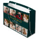 Feliz Navidad Verde Elegante Fotos Modernas Gran Bolsa de Regalos Esta bolsa de regalo tiene la elegancia del arco de oro con estética moderna. Lleve sus productos básicos con estilo y añada un toque personal a sus salidas diarias. Disfrute de las vacaciones con estilo con esta moda y versátil bolsa de regalo. Puede personalizar fácilmente su mensaje, nombre y fotos