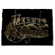 Feliz Navidad! Elegante guión falso Relieve metalizado dorado tipografía sobre fondo negro, Navidades regalos bolso de regalo