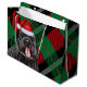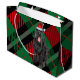A los amantes del perro les encantará recibir o regalar esta bonita bolsa de regalos de temporada de vacaciones, con un elegante perro del Black Russian Terrier con un fondo adornado con estampado rojo y verde.