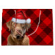 A los amantes del perro les encantará recibir o regalar esta bonita bolsa de regalo de temporada navideña, con un lindo perro de Chesapeake Bay Retriever sobre un fondo festivo con estampado de búfalo rojo.