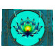 Flor de elegancia, Mystic Lotus. La flor de loto es simétrica y exquisitamente detallada, con sus pétalos en tonos armoniosos de verde azulado, azul y verde. El centro de la flor, de color amarillo intenso, aporta un acento vibrante y destaca su posición central. El diseño combina la belleza natural con la decoración ornamentada, creando una imagen armoniosa y elegante, moderna y tradicional.