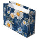 Una deliciosa bolsa de regalo floral. En este diseño floral predominan el blues, el blanco y el amarillo. Perfecto para el Día de la Madre, cumpleaños, duchas para bebés.