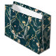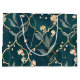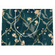 Velvety, fondo verde profundo con motivos marroquíes dorados y flores de orquídea de color turquesa.