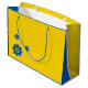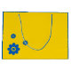 Hermosas flores azules y amarillas en un fondo amarillo y azul