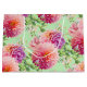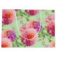 Las flores rosadas de Dahlia Flowers tienen dos hermosas flores de Dahlia pintadas de rosa y morado y un lindo caldo. Las hojas y tallos verdes con flores blancas pequeñas actúan como un acento en la imagen con estampado. La única agrupación de flores es grande y se extiende más allá de los bordes.