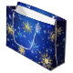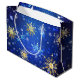 Bolsa De Regalo Grande Fondo azul XMAS con copos de nieve dorados