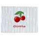 Pintura gráfica original de cerezas rojas jugosas y frescas sobre un fondo de rayas azules. Es genial con la cocina retro, vintage, rockabilly, de los años 40, 50, casa de campo, temas modernos de medio siglo. Huella divertida para cocina, dormitorio, artículos de baño o ropa linda. Todos los diseños de Artellus son obras de arte originales creadas y protegidas por los derechos de autor de Artellus y contienen una firma oculta. No copiar.
