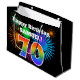 Este divertido y vibrante diseño de bolsos de regalo presenta un patrón colorido inspirado en fuegos artificiales de celebración, junto con el número "70" que tiene un arcoiris multicolor como patrón gradiente, sobre un fondo de color negro. También incluye un nombre personalizado y un mensaje de evento, como un saludo de cumpleaños. Una bolsa de regalo divertida como esta se podría usar cuando se envuelve un regalo o se le da para celebrar el septuagésimo cumpleaños de alguien. [~Z0000328]