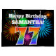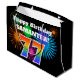 Este divertido y vibrante diseño de bolsos de regalo presenta un colorido patrón inspirado en fuegos artificiales de celebración, junto con el número "77" que presenta un patrón gradiente inspirado en el arcoiris multicolor, sobre un fondo de color negro. También incluye un nombre personalizado y un mensaje de evento, como un saludo de cumpleaños. Una bolsa de regalo colorida y alegre como esta puede ser usada cuando se da un regalo o regalo a alguien que está celebrando su cumpleaños setenta y siete. [~Z0000328]