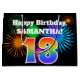 Este divertido y vibrante diseño de bolsos de regalo presenta un colorido patrón inspirado en fuegos artificiales de celebración, junto con el número "13" que tiene un arcoiris multicolor como patrón gradiente, en un fondo de color negro. También incluye un nombre personalizado y un mensaje de evento, como un saludo de cumpleaños. Una bolsa de regalo como esta podría ser usada para envolver un regalo o regalo para celebrar el decimotercer cumpleaños de alguien. [~Z0000328]
