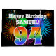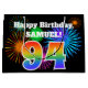 Este divertido y vibrante diseño de bolsos de regalo presenta un patrón colorido inspirado en fuegos artificiales de celebración, junto con el número "94" que tiene un patrón gradiente inspirado en el arcoiris multicolor, sobre un fondo de color negro. También incluye un nombre de personalizable y un mensaje de evento, como un saludo de cumpleaños. Una bolsa de regalo como esta podría ser usada para envolver un regalo o regalo para celebrar el 94 cumpleaños de alguien. [~Z0000328]