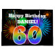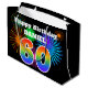 Este divertido y vibrante diseño de bolsos de regalo presenta un patrón colorido inspirado en fuegos artificiales de celebración, junto con el número "60" que tiene un patrón gradiente inspirado en el arcoiris multicolor, sobre un fondo de color negro. También incluye un nombre personalizado y un mensaje de evento, como un saludo de cumpleaños. Una bolsa de regalo colorida como esta podría ser usada cuando se envuelve un regalo o regalo que se está regalando para celebrar el sexagésimo cumpleaños de alguien. [~Z0000328]