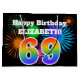 Este divertido y vibrante diseño de bolsos de regalo presenta un colorido patrón inspirado en fuegos artificiales de celebración, junto con el número "69" que presenta un arcoiris multicolor como patrón gradiente, sobre un fondo de color negro. También incluye un nombre personalizado y un mensaje de evento, como un saludo de cumpleaños. Una bolsa de regalo colorida como esta podría ser usada cuando se envuelve un regalo o regalo que se está regalando para celebrar el sexagésimo noveno cumpleaños de alguien. [~Z0000328]