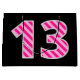 Un lado de este sencillo y divertido diseño de bolsos de regalo de cumpleaños tiene un gran número "13" con un patrón de rayas rosas oscuras y rosas claras. El otro lado presenta el mensaje de bienvenida de cumpleaños "Feliz 13 cumpleaños", y un nombre personalizado, ambos en texto de color amarillo. El fondo tiene un color negro. Bolsas de regalo como esta pueden ser usadas cuando se envuelven regalos o regalos que se dan en honor de los 13 años de alguien. [~Z0000378]