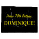 Un lado de este divertido y sencillo diseño de bolsos de regalo con temática de cumpleaños tiene un gran número "78" con un patrón de rayas rosa oscuro y rosa claro. El otro lado presenta el mensaje de bienvenida de cumpleaños "Feliz cumpleaños 78", y un nombre de personalizable, ambos en texto de color amarillo. El fondo tiene un color negro. Una bolsa de regalo como esta puede ser usada cuando se envuelven regalos o regalos en honor a los setenta y ocho años de alguien. [~Z0000378]