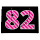 Un lado de este divertido y sencillo diseño de bolsos de regalo con temática de cumpleaños tiene un gran número "82" con un patrón de rayas rosa oscuro y rosa claro. El mensaje de bienvenida de cumpleaños "Feliz cumpleaños número 82", y un nombre editable aparecen en el otro lado, ambos en texto de color amarillo. El fondo es negro de color. Bolsas de regalo como esta pueden ser usadas cuando se envuelven regalos o regalos en honor a los ochenta segundos cumpleaños de alguien. [~Z0000378]