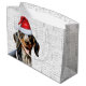 A los amantes del perro les encantará recibir o regalar esta linda bolsa de regalo de temporada de vacaciones, con un lindo y divertido sabueso azul en Santa hat.
