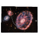 Pasa por el agujero cósmico de la cerradura y presencia la Galaxia de la volante, un espectáculo celeste a diferencia de cualquier otro. El telescopio Webb revela su majestuosa forma, un anillo de brillante estrella que rodea un núcleo distorsionado, un testamento de una colisión colosal con una galaxia más pequeña hace mucho tiempo. Flanqueado por dos galaxias acompañantes, atrapado para siempre en una danza cósmica, el Cartonero domina el primer plano. Pero la verdadera profundidad de la imagen está más allá, un tapiz de galaxias débiles y giratorias, un campo profundo revelado por el increíble poder de Webb. Cada pizca de luz un universo no contado, susurrando historias de formación, evolución y la vastedad de la existencia. Este archivo es de dominio público porque fue creado por la NASA.
