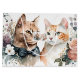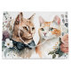 Par de gatos con flores de fondo blanco. Se puede utilizar para un evento de boda o aniversario.
