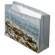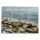 Foto de Zolotareva. Gaviota blanca y surf marina. el sol brilla a través del agua; la orilla de las gaviotas en la brisa. El azul claro es el color del cielo y, en consecuencia, también es el color del mar, los lagos y los ríos. hermosa vista del mar desde la colina. Puede agregar nombre o texto personalizado. Personaliza esta plantilla