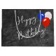Patrón de cuero afligido negro con texto Feliz Cumpleaños y globos fiestas rojos, blancos y azules. El texto es editable.