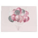 Bolsa de regalo con un ilustracion de un montón de globos en colores gris rosa y plateado.