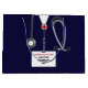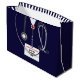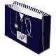 Bolsa de regalo única para graduación de la escuela de medicina para médica con exfoliaciones de hospital azul marino y estetoscopio. Edite texto para agregar el nombre del médica, asistente médico o enfermera y las credenciales médicas.