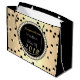 Añade un toque personal a tu regalo de regalo. Una hermosa bolsa de regalo con divertido confeti negro y dorado, elegantes adornos dorados y el nombre del graduado.