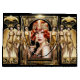 Un hermoso chica pelirrojo Flapper está usando un faux dorado shimmer y una cabecera que parecen brillar y brillar sobre un fondo negro. Lleva un delineador negro grueso y un pintalabios rojo oscuro que hacen que su piel de porcelana parezca irradiarse en la luz y está enmarcada en un marco retro, de estilo art decó ornamentado con un marco de oro falso. La están parpadeando tres glamorosas bailarinas flapper en vestidos de satén dorado abrazando figuras. Están subiendo a un escenario a punto de bailar toda la noche. Este diseño es ideal para un "gran gatsby", "roaring twenties", cumpleaños temática Flapper chica de los años 20, ducha de novia, boda o aniversario. También es ideal para proyectos de desconexión y de reserva de recortes.