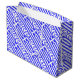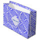 Gran bolsa de regalo tiene la bandera griega y la palabra, o nombre GRECIA abajo en azul, baldosa diagonalmente para un aspecto artístico. La bandera muestra rayas azules y blancas con una cruz azul y blanca en la parte superior derecha. Un espacio blanco y texturado de cuadrados chillones mantiene un lugar para que tu nombre personalice un artículo o cree un regalo personalizado. Diversión para reuniones familiares, grupos de viajes y compartir tu amor y orgullo en tu herencia, ancestros y cultura. Excelente por celebrar el Día de Oxi.