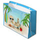Esta bolsa de regalo para bebés de la playa tiene un lindo bebé de la playa bebiendo su limón. Está parado con su impresionante castillo de arena y su tabla de surf rodeados de palmeras tropicales. Es perfecto para duchas, recienes nacidos y un primer cumpleaños. Algunos gráficos de artwork©delightful-doodles.com y CherylSeslarDesigns.com en DigiWebStudio.com. ^