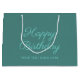 Personalizado Verde azulado Color verde azul caligrafía Feliz Cumpleaños Plantilla moderna Elegante Bolsa de Regalo Grande.