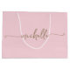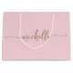 Bolsa de regalo personalizada elegante moderna con monograma en rosa suave y dorado. Este diseño presenta su primer nombre en una tipografía de firma con estilo de letra manuscrita adornada (o caligrafía) en dorado sobre un fondo de color rosa suave o rosa bebé. Estas son fáciles de personalizar. Esta bolsa de regalo femenina es ideal para regalar en una inauguración, también para cumpleaños, día de la madre, boda, fiesta de cumpleaños de 16 años, despedida de soltera, baby shower, regalo de graduación y es para la chica que ama cosas de elegancia única.