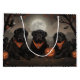 Descanse el espíritu espeluznante con este inquietante diseño de Halloween que presenta una manada de perros bajo un cielo oscuro, iluminado por la luna, rodeados de bates voladores y calabazas brillantes. Perfecto para los amantes de la diversión con sus peludos amigos.