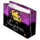 Esta divertida y espeluznante bolsa de regalo puede ser personalizada con un nombre o título, como hija, nieta, sobrina, amiga, etc. Cuenta con una bruja linda al lado de una casa embrujada. En el fondo hay una luna llena con murciélagos y un cielo nocturno morado con estrellas. El texto combina fuentes decorativas y serif para un estilo elegante y moderno. Esto es perfecto para Halloween.