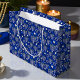 Este diseño de vacaciones de Hanukkah presenta un brillante fondo azul con menorah y estrella de David overlay. #hanukkah #chanukah #festivales #fesybag #moderno #azul #menorah #starofdavid #jewish #elegante #moda #patrón #personalizado #addyourown #giftbag #party #bag #bolsa #giftwrap #papel de envoltura #giftwrapping #suministros de fiesta