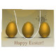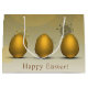 Un ilustracion abstracto y moderno de Pascua con 3 huevos dorados de Pascua sobre un fondo de boquilla con flores abstractas.