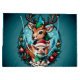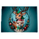 Agradable y acogedor ilustracion Navidad con ciervo personalizado y cordero, rodeado de un armonioso fondo azul-verde que crea un ambiente de invierno. El ciervo se encuentra detrás del cordero, vestido con un acogedor suéter verde y con un sombrero de Santa Claus rojo brillante en la cabeza. Ambos irradian alegría y amistad, sus grandes ojos expresivos brillando con entusiasmo. El cordero mira al mundo curiosa y alegremente, mientras que el ciervo refuerza su presencia con una sonrisa suave y atrae al espectador hacia el espíritu festivo.