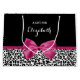 Un moderno leopardo blanco y negro imprime una bolsa de regalo de gran tamaño con una cinta rosa oscuro vivaz atada a una linda arco giratorio. Personalice esta moda y diseño elegante de patrones animales añadiendo el nombre de su chica adolescente. Imagen impresa plana, no cinta real.