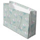 Conejos dulces con suéteres rojos y blancos saltan mientras los copos de nieve caen sobre un suave fondo verde con otros colores mudos. Este niño Navidad una gran bolsa de regalo es perfecta para envolver regalos de vacaciones.