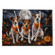 Descanse el espíritu espeluznante con este inquietante diseño de Halloween que presenta una manada de perros bajo un cielo oscuro, iluminado por la luna, rodeados de bates voladores y calabazas brillantes. Perfecto para los amantes de la diversión con sus peludos amigos.