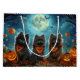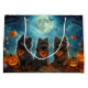 Descanse el espíritu espeluznante con este inquietante diseño de Halloween que presenta una manada de perros bajo un cielo oscuro, iluminado por la luna, rodeados de bates voladores y calabazas brillantes. Perfecto para los amantes de la diversión con sus peludos amigos.