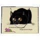 El gato negro está a punto de saltar y hacer la "maniobra de gatitos". Ratón de juguete cerca del gato negro.