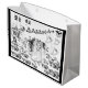 Esta imagen es de una ceremonia boda "estilo Halloween". El novio y la novia son esqueletos caminando por el pasillo. Los clientes de la pareja incluyen un fantasma, un murciélago, búho y brujas. Una luna llena con algunas nubes y la pareja que llega a través del parche de calabaza en el cementerio. Una gran decoración para una fiesta de Halloween. Este diseño está disponible en diversos estilos y tamaños de bolsas de regalo. Una gran adición a tu fiesta de Halloween.