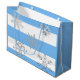 ¡Es un maravilloso país invernal! ¡Que nieve! Estrellas azules y blancas de invierno con elegantes copos de nieve de plata juntos para una encantadora bolsa de regalo.