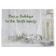 Linterna blanca con adornos vacacionales en la nieve para Navidades. El texto es editable.